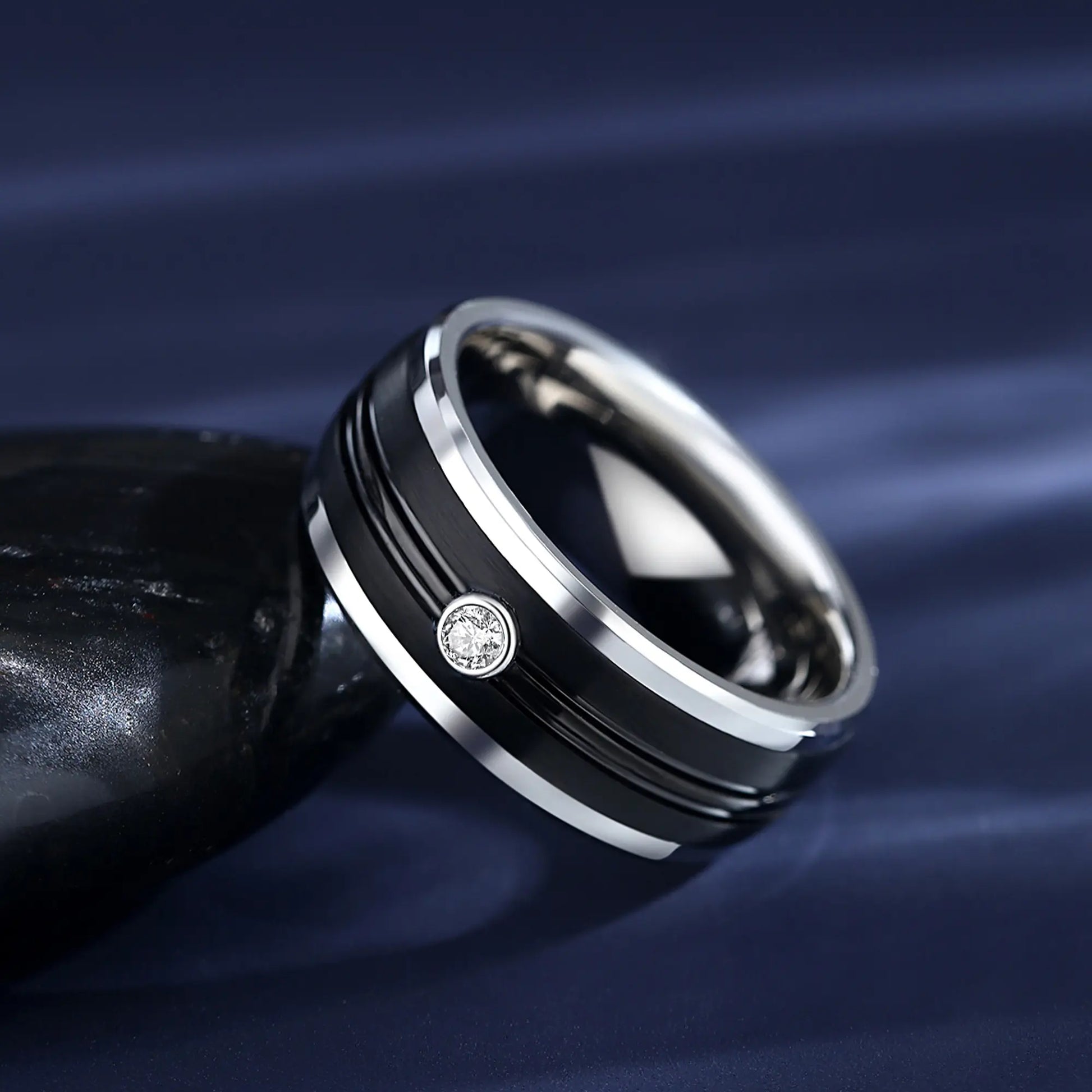 - Material: Tungsten, Moissanite Stone