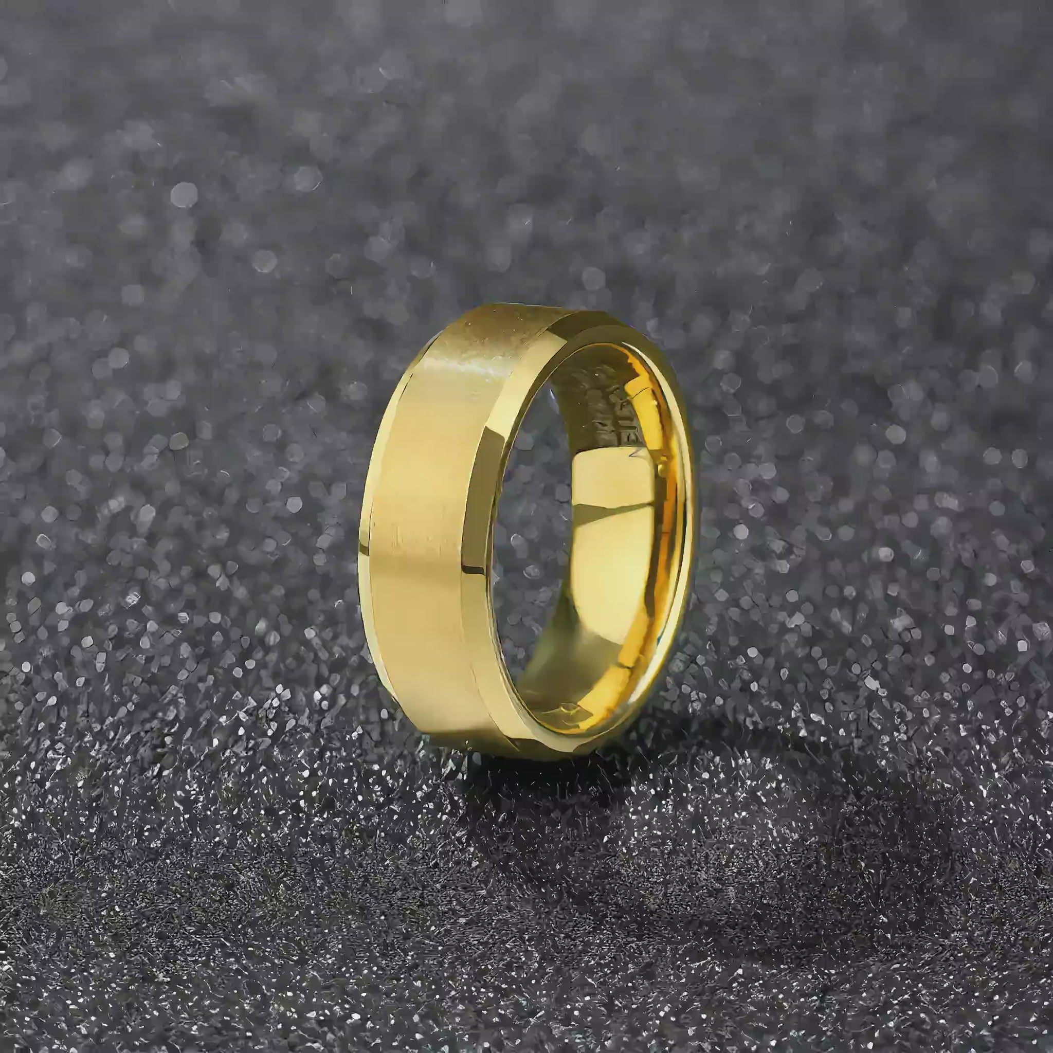 Crafted for eternity. Sleek 18k gold-plated tungsten meets brushed texture—a minimalist ode to legacy. Built to endure generations, its quiet luxury mirrors the man who values tradition yet defines it. Timeless, unyielding, refined. Not just a ring, but a lineage forged in steel and gold. Wear your heritage. Command tomorrow.