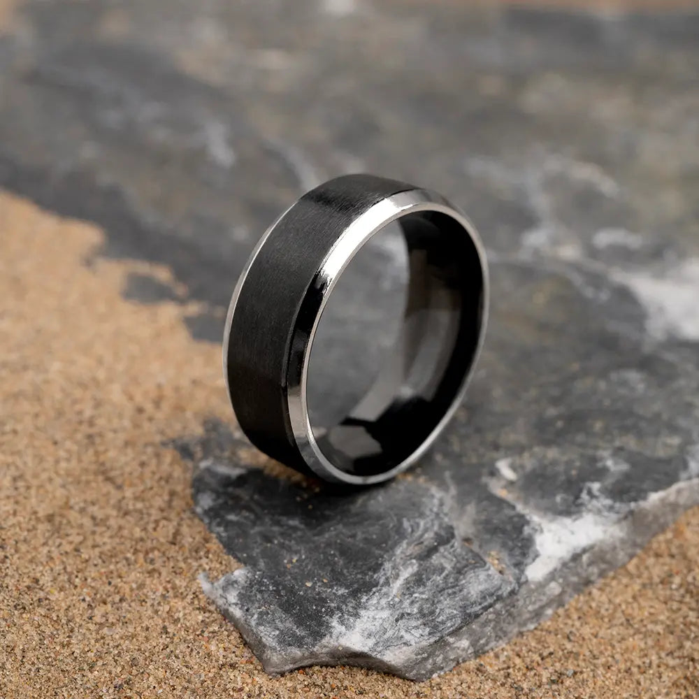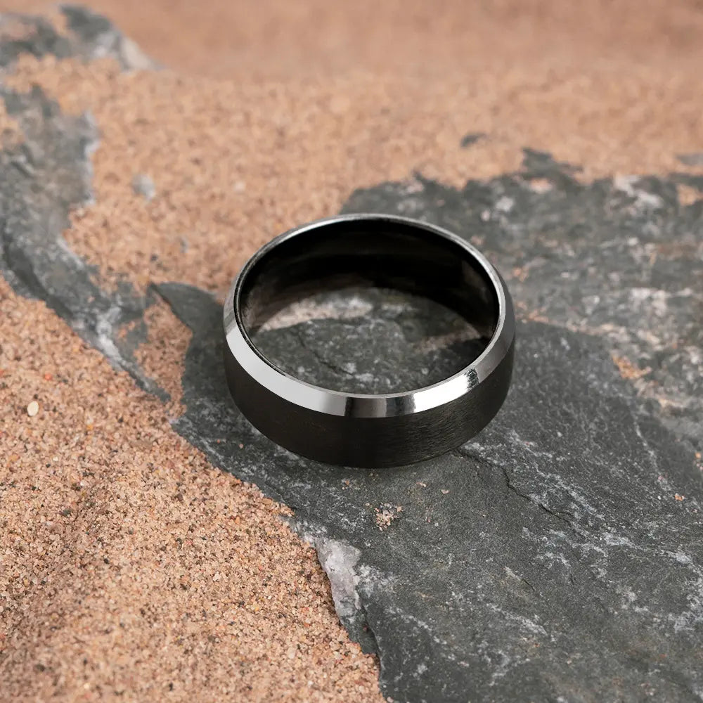Command the void. Brushed black tungsten—an ebon path to eternity—meets razor-sharp silver bevels, slicing through conformity. Modern might meets primal minimalism. For those who rule from the shadows: subtle, unyielding, galactic. Wear the exclamation point of power. Pluto’s no planet? Fine. It’s a state of mind.